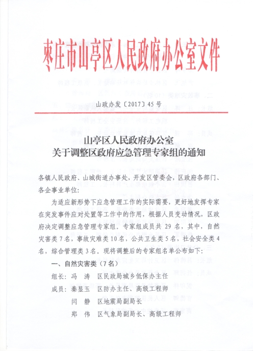 关于调整区政府应急管理专家组的通知